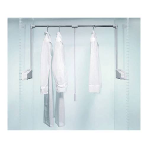 Le Mini-Tube télescopique est un accessoire très pratique. Applicable aussi bien sur les flancs que sous les étagères de l’armoire, il permet l’appui temporaires des vêtements sur le cintre.